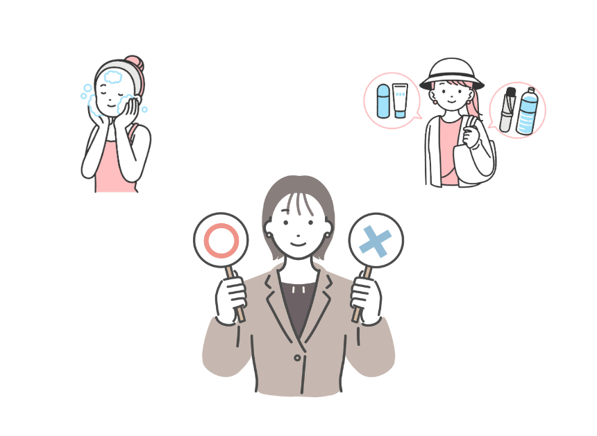 - SPF・PA値の高い日焼け止めを毎朝塗り、2〜3時間ごとに塗り直す