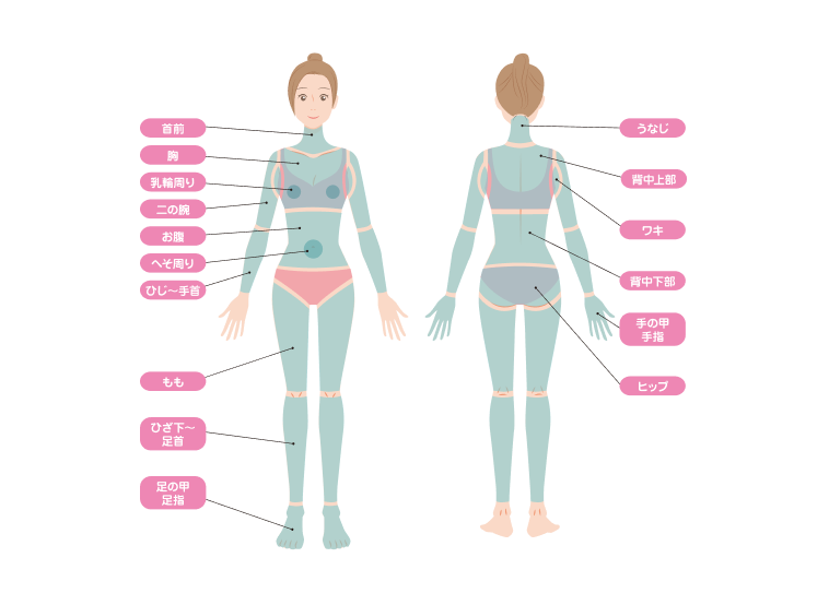 イラストの中から気になる部位を5カ所セレクトして脱毛が可能