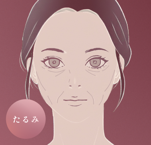 さらに乾燥や生活習慣の乱れも影響し、肌内部の構造が弱くなることで弾力が失われ、しぼんだ印象を与えます。たるみは加齢性の骨萎縮、靭帯の緩みなどに伴う脂肪の下垂感により現れます。
